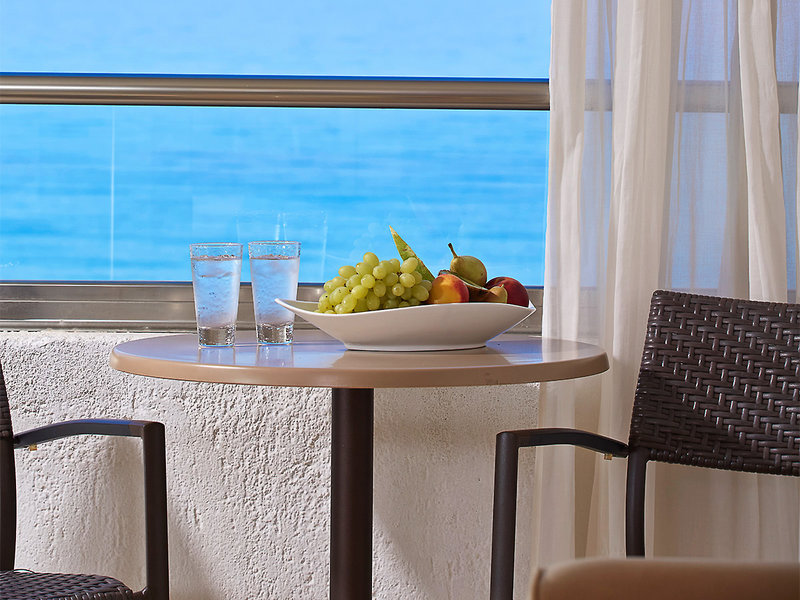Bývanie: Dvojlôžková izba (dvojlôžková izba, cca 24 m2), klimatizácia, chladnička, kávovar/čajník, TV (32 palcov), telefón, WiFi, trezor. Kúpeľňa, WC, fén. Balkón/terasa, voliteľné Výhľad na more (DZM). Max. 3E, možné rezervovať na jedno použitie (jednolôžková izba)