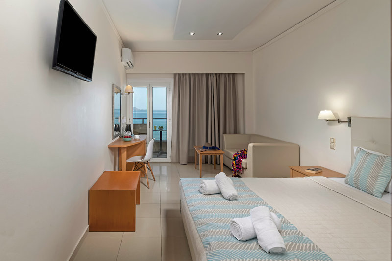 - 21-25 qm, Juniorsuite, Meerblick, Nichtraucher, Doppelbetten (1 Doppel- oder 2 Einzelbetten), 1 Sofabett, 1 Bad, Dusche, WC, Badeslipper, Haartrockner, Klimaanlage, Mini-Kühlschrank, Safe (kostenpflichtig), 1 TV (Sat-TV), WLAN, Kaffee/Tee, Terrasse (möbliert), Bettwäschewechsel (2 x wöchentlich), Handtuchwechsel (3 x wöchentlich), Kopfkissen-Menü, hochwertige Badartikel, Pooltuch