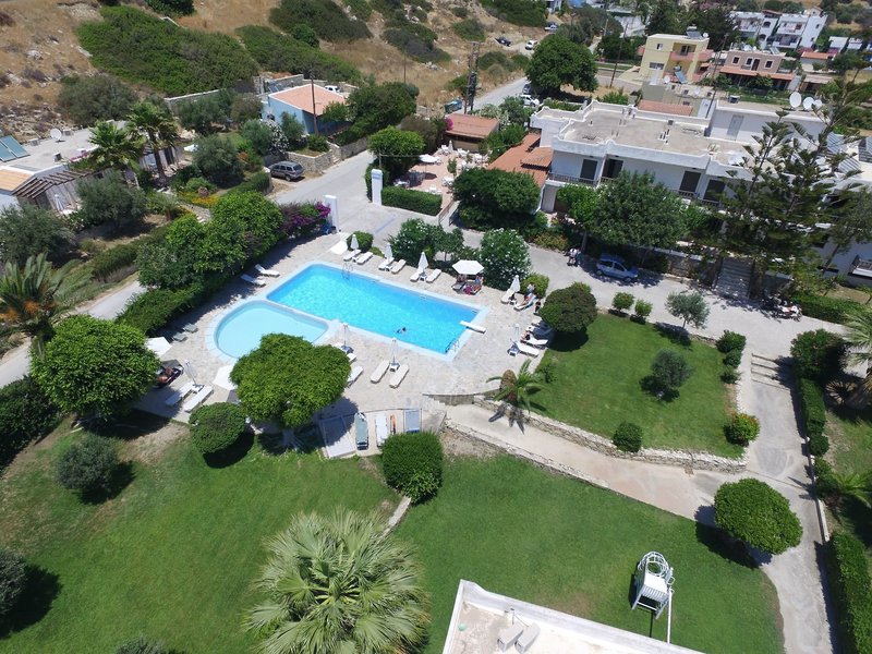 Vybavenie: Rodinný komplex je tradične prevádzkovaný už mnoho rokov a má 67 izieb rozmiestnených v hlavnej budove a niekoľkých vedľajších budovách. V hlavnej budove je 24-hodinová recepcia s centrálnym trezorom (za poplatok), Wi-Fi (v cene), TV a internetový kútik a bar. V krásnej, idylickej záhrade komplexu sa nachádza sladkovodný bazén s oddeleným detským bazénom a slnečnou terasou s ležadlami a slnečníkmi (zdarma). Ležadlá a slnečníky sú na verejnej pláži za poplatok.