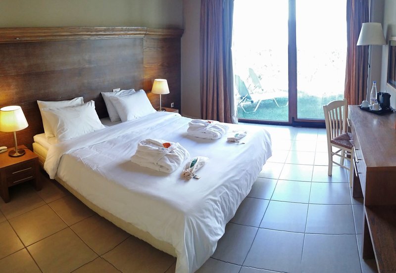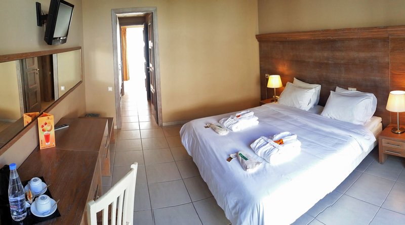 Ausstattung: Die familiär und seit vielen Jahren traditionell geführte Anlage verfügt über 67 Zimmer verteilt auf ein Haupthaus und mehrere Nebengebäude. Im Haupthaus befindet sich die 24-h-Rezeption mit Zentralsafe (gegen Gebühr), Wi-Fi (inklusive), TV- und Internetecke und Bar. Im wunderschönen, idyllischen Garten der Anlage befindet sich ein Süßwasser-Swimmingpool mit separatem Kinderbecken sowie einer Sonnenterrasse mit Liegen und Schirmen (kostenfrei). Am öffentlichen Strand sind Liegen und Schirme gegen Gebühr verfügbar.