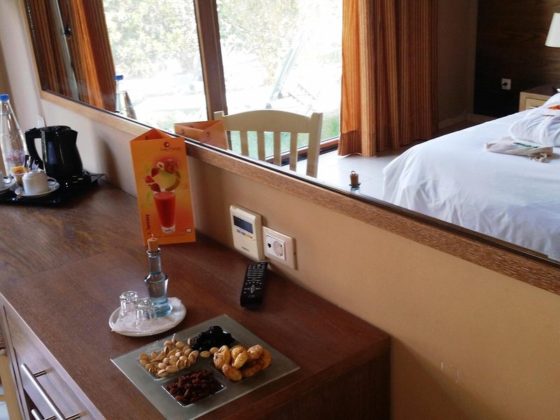 Ubytovanie: Klimatizácia zabezpečuje príjemnú vnútornú klímu v izbách. Balkón je štandardom vo väčšine izieb. Izby majú manželskú posteľ a rozkladaciu pohovku. K dispozícii sú samostatné spálne. Prístelky je možné vyžiadať. Najlepšou ochranou vecí hostí je trezor. K dispozícii je tiež chladnička a príslušenstvo na prípravu čaju/kávy. Okrem toho je k dispozícii telefón, TV, rádio a WiFi (zadarmo). V ubytovacej jednotke nájdete papuče. Kúpeľňa je vybavená sprchovacím kútom, vaňou, sušičom vlasov a županmi. Dom ponúka rodinné a nefajčiarske izby.