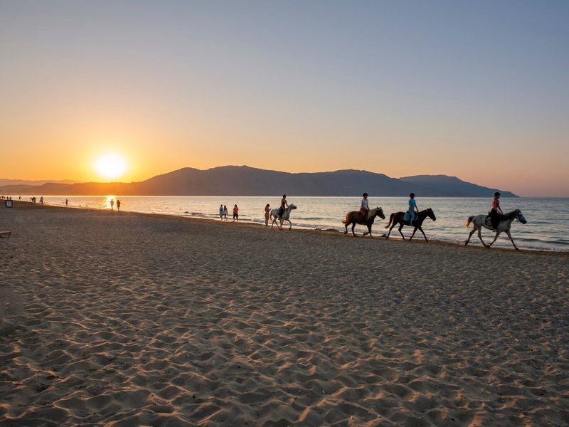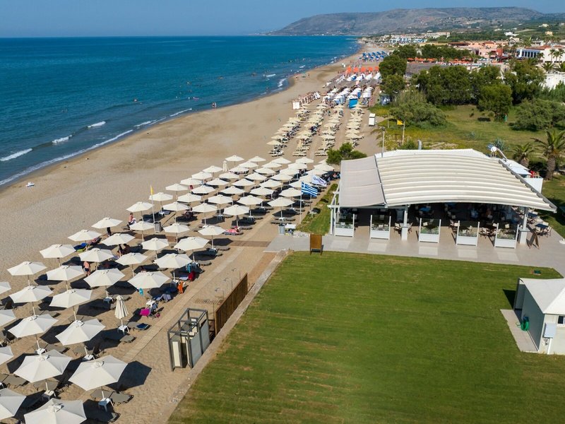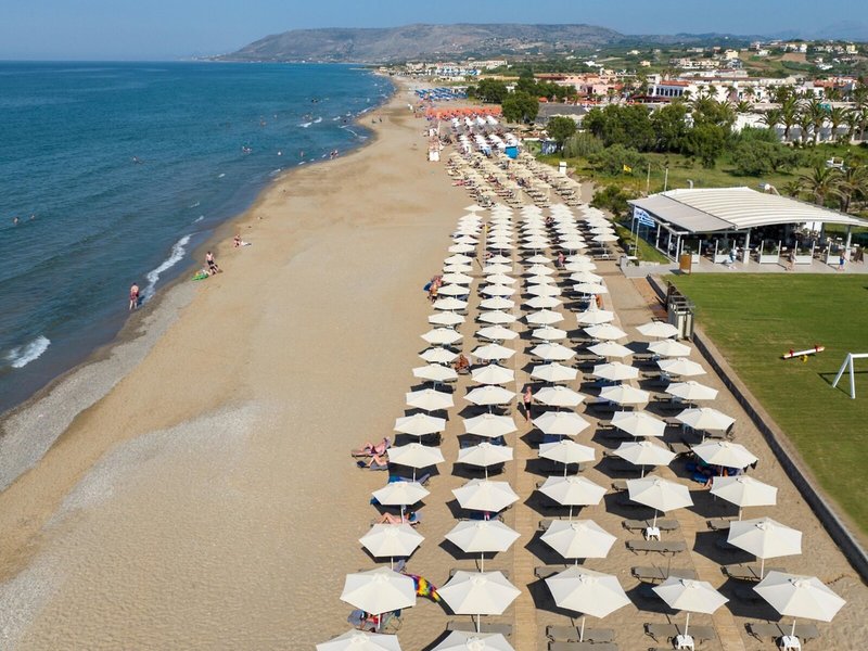 - Pláž Georgioupolis: piesočná, štrková, prírodná, verejná s vlastnou hotelovou časťou, ležadlá: za poplatok