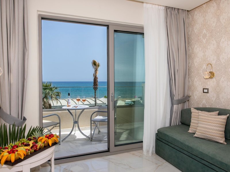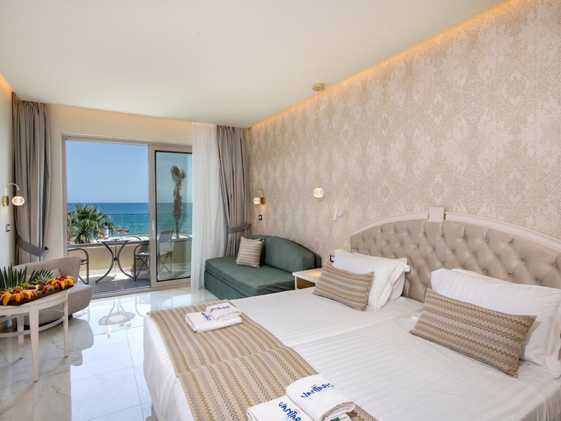- Superior Double room (DZX4), Doppelzimmer, Nichtraucherzimmer, Meerseite, seitlicher Meerblick, ca. 22 - 24 m², letzte Komplettrenovierung 2023, Gesamtanzahl der Räume in diesem Zimmertyp: 1, Aufteilung wie folgt: kombiniertes Wohn-/Schlafzimmer, 1 Schlafzimmer, 2 Einzelbetten (90x200cm), Babybett: pro Tag ca. 5.00 EUR, bei All Inclusive inklusive, Klimaanlage: ohne Gebühr, kalt, warm, Fußboden: Fliesenboden, Safe: pro Tag ca. 2.00 EUR, bei All Inclusive inklusive, Kühlschrank: ohne Gebühr, Kaffee-/Teezubereiter, Wasserkocher, Internet: WLAN/WiFi: ohne Gebühr, Fernseher: Flatscreen, Reinigungsservice: täglich, ohne Gebühr, Dusche, WC, Slipper: ohne Gebühr, Föhn, Kosmetikspiegel, Balkon: mit Sitzgelegenheit