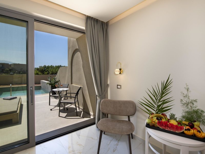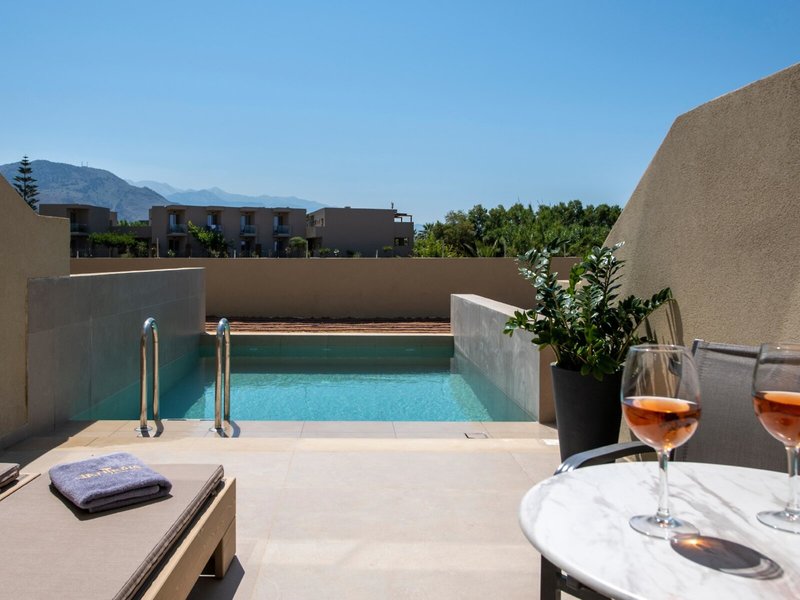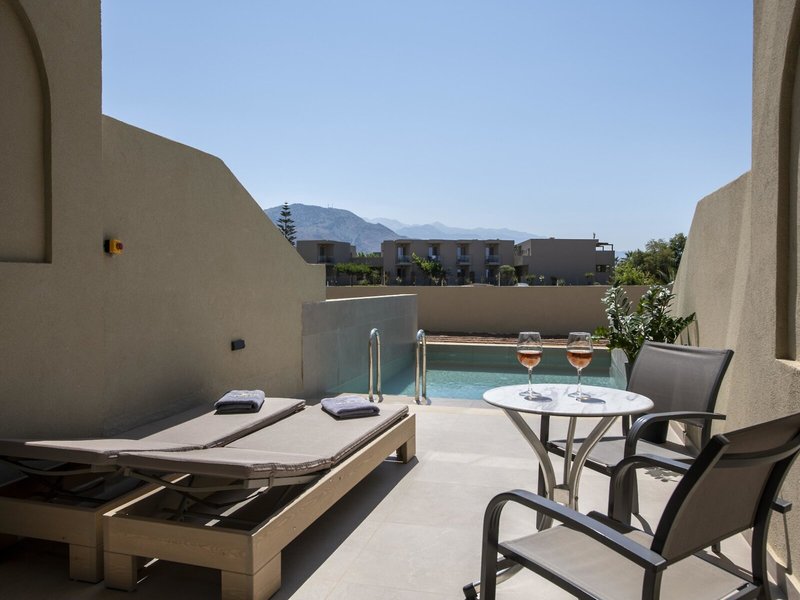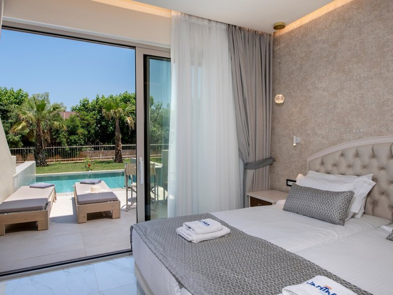 - Junior Suite with individual pool (JSX1), Juniorsuite, Nichtraucherzimmer, Landseite, Poolseite, Poolblick, ca. 22 - 24 m², letzte Komplettrenovierung 2023, Gesamtanzahl der Räume in diesem Zimmertyp: 1, Aufteilung wie folgt: kombiniertes Wohn-/Schlafzimmer, 2 Einzelbetten (90x200cm), Klimaanlage: individuell regelbar, Heizung: individuell regelbar, Fußboden: Fliesenboden, Safe: pro Tag ca. 2.00 EUR, Bügeleisen, Bügelbrett, Kühlschrank, Espressomaschine, Telefon, Internet: WLAN/WiFi: ohne Gebühr, ca. 0 EUR, Fernseher: Sat-TV, Reinigungsservice: täglich, Dusche, WC, Terrasse: mit Liegestühlen, mit Private Pool