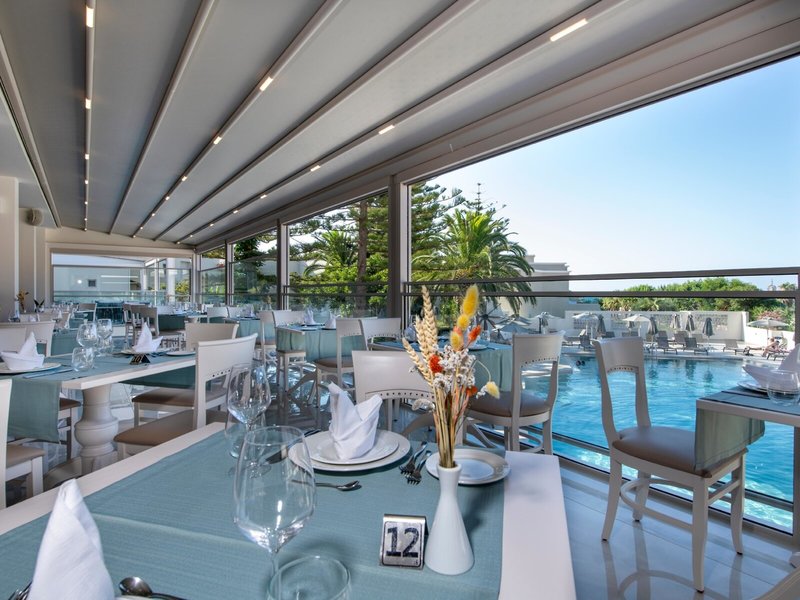 - Hauptrestaurant „Knossos for AI BLD-HB Lunch ex. charge“: Küche: griechisch, international, Buffet, gegen Gebühr, bei All Inclusive inklusive, klimatisierbar, mit Terrasse, Kinderhochstuhl, angemessene Kleidung erwünscht