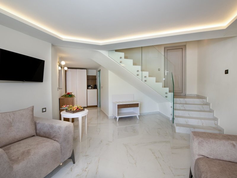 - Deluxe maisonette with individual pool (DZX5), Maisonette, Landseite, Poolblick, Landblick, ca. 60 m², letzte Komplettrenovierung 2023, Gesamtanzahl der Räume in diesem Zimmertyp: 2, Aufteilung wie folgt: kombiniertes Wohn-/Schlafzimmer, Maisonette, 1 Schlafzimmer, 1 King Size Bett (160x200cm), 1 Schlafsofa (160x200cm), 1 Zustellbett (100x195cm), Moskitonetz, Klimaanlage: ohne Gebühr, kalt, warm, Fußboden: Fliesenboden, Safe: pro Tag ca. 2.00 EUR, bei All Inclusive inklusive, Bügeleisen, Bügelbrett, Kühlschrank, Espressomaschine, Kaffee-/Teezubereiter, Wasserkocher, Internet: WLAN/WiFi: ohne Gebühr, Fernseher: Flatscreen, Dusche, WC, Slipper: ohne Gebühr, 2 Bäder, Föhn, Kosmetikspiegel, Balkon, Terrasse: mit Liegestühlen, mit Sitzgelegenheit, mit Private Pool