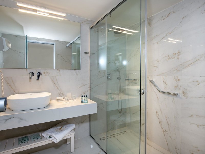 - Dvojlôžková izba Superior (DZX4), dvojlôžková izba, nefajčiarska izba, morská strana, bočný výhľad na more, cca 22 - 24 m², posledná kompletná rekonštrukcia v roku 2023, celkový počet izieb v tomto type izby: 1, rozloženie: kombinovaná obývacia izba/spálňa, 1 spálňa, 2 samostatné lôžka (90x200 cm), detská postieľka: cca 5,00 EUR na deň, v cene All Inclusive, klimatizácia: bez poplatku, studená, teplá, podlaha: dlažba, trezor: cca 2,00 EUR na deň, v cene All Inclusive, chladnička: bez poplatku, kávovar/čajník, rýchlovarná kanvica, Internet: WLAN/WiFi: bez poplatku, TV: byt. zástena, Upratovacia služba: denne, zdarma, sprcha, WC, papuče: zdarma, fén, kozmetické zrkadlo, balkón: s posedením