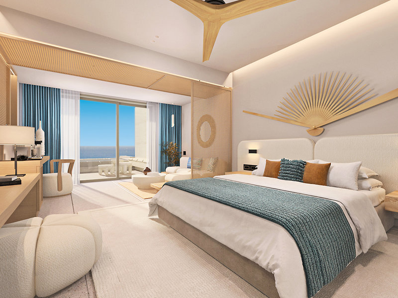 Sky Junior Suite (JSM, ca. 35-39 qm), Klimaanlage, Mini Bar (gegen Gebühr), Telefon (gegen Gebühr), Kaffee-/Teezubereiter, TV, WLAN, Mietsafe, Föhn, Dusche, WC, Balkon/Terrasse mit Meerblick. Max. 3E