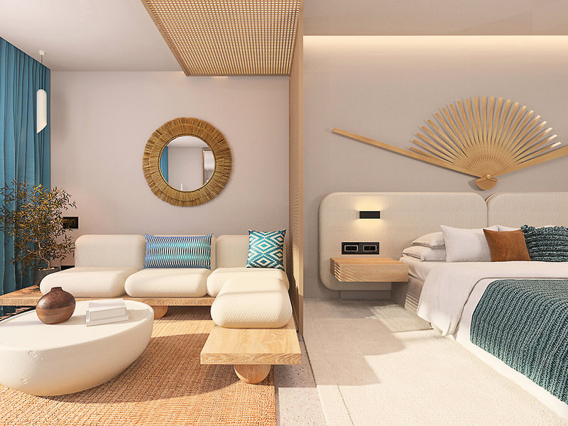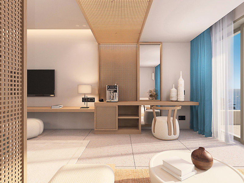 Junior Suite Swim-up (JSA, cca 35-39 m2), klimatizácia, minibar (za poplatok), telefón (za poplatok), príslušenstvo na prípravu kávy/čaju, TV, Wi-Fi, trezor na prenájom, fén, sprcha, WC, balkón/terasa. Max. 3E, voliteľne s výhľadom na more (JSP). Max. 4E