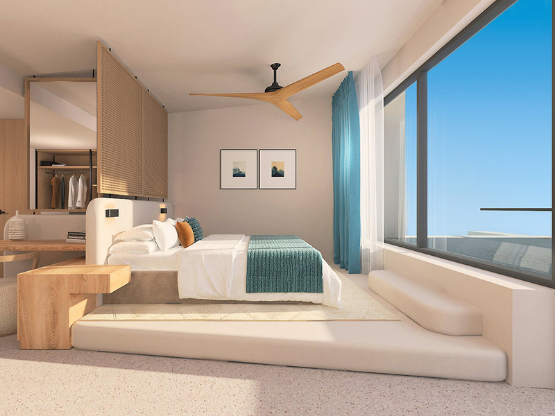Sky Junior Suite (JSM, cca 35-39 m2), klimatizácia, mini bar (za poplatok), telefón (za poplatok), príslušenstvo na prípravu kávy/čaju, TV, Wi-Fi, trezor na prenájom, fén, sprcha, WC, balkón/terasa s výhľadom na more. Max. 3E