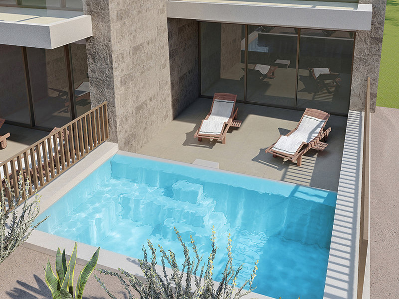 Dvojlôžková izba swim-up (DZS, cca 30 m2), klimatizácia, minibar (za poplatok), telefón (za poplatok), TV, Wi-Fi, prenájom trezoru, fén, sprcha, WC, balkón/terasa. Fakultatívne s výhľadom na more (DZM). Max. 2E