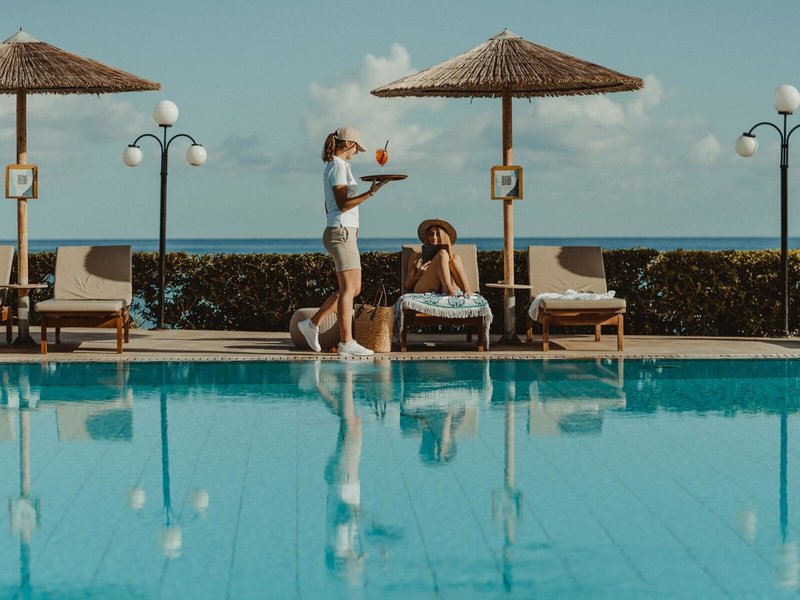 zus. Informationen: Touristensteuer Griechenland erhebt nach aktuellem Stand eine Klimasteuer (die sogenannte "Abgabe für Klimaresilienz") pro Zimmer pro Nacht, zahlbar vor Ort im Hotel, Unterkunft: