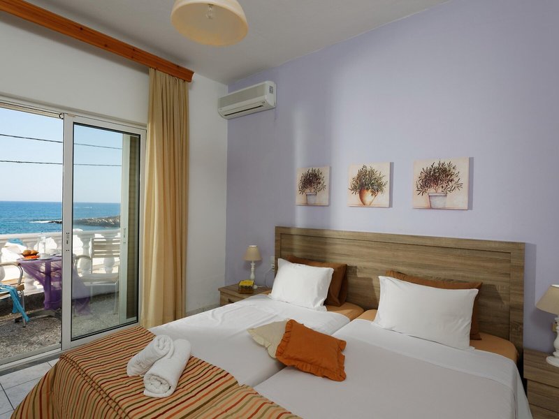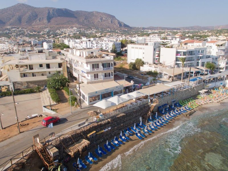 Poloha a okolie Hotel sa nachádza priamo na pláži, asi 200 m od centra Hersonissosu. Rozsiahle nákupné a zábavné možnosti, ako sú bary a reštaurácie, sú v bezprostrednej blízkosti budovy hotela. Na zastávku verejnej dopravy sa dostanete pešo za pár minút, vo vzdialenosti približne 500 m. Centrum mesta Heraklion a letisko hlavného mesta Kréty sú vzdialené približne 25 km. Palác Knossos je vzdialený približne 20 km.