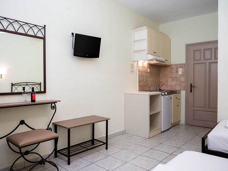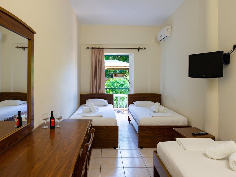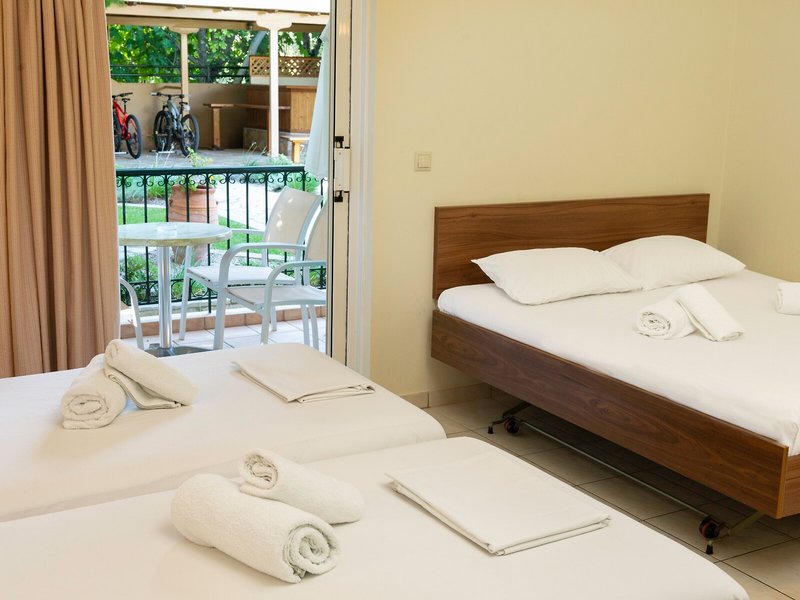 So wohnen Sie: Für angenehmes Raumklima in den Zimmern sorgen eine Klimaanlage und eine Heizung. In den meisten Zimmern ist ein Balkon oder eine Terrasse vorhanden. Die Zimmer verfügen über ein Doppelbett oder ein Sofabett. Wertsachen können in einem Safe sicher aufbewahrt werden. Die Kochnische ist mit einem Kühlschrank ausgestattet. Ein Bügelset ist für den zusätzlichen Komfort der Gäste verfügbar. Darüber hinaus sind ein Flachbildschirmfernseher und WiFi (ohne Gebühr) vorhanden. Im Badezimmer – ausgestattet mit einer Dusche – gibt es einen Haartrockner. Als Besonderheit genießen die Gäste in den Badezimmern Kosmetikartikel und eine Auswahl an Handtüchern. Für Eltern mit Kindern stehen Familienzimmer zur Verfügung.