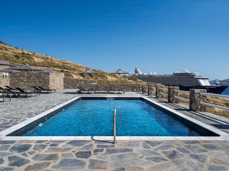 - Flughafen Mykonos International Airport ca. 5 km, Fahrzeit: ca. 15 Minuten (Die Transferzeit kann hiervon abweichen).