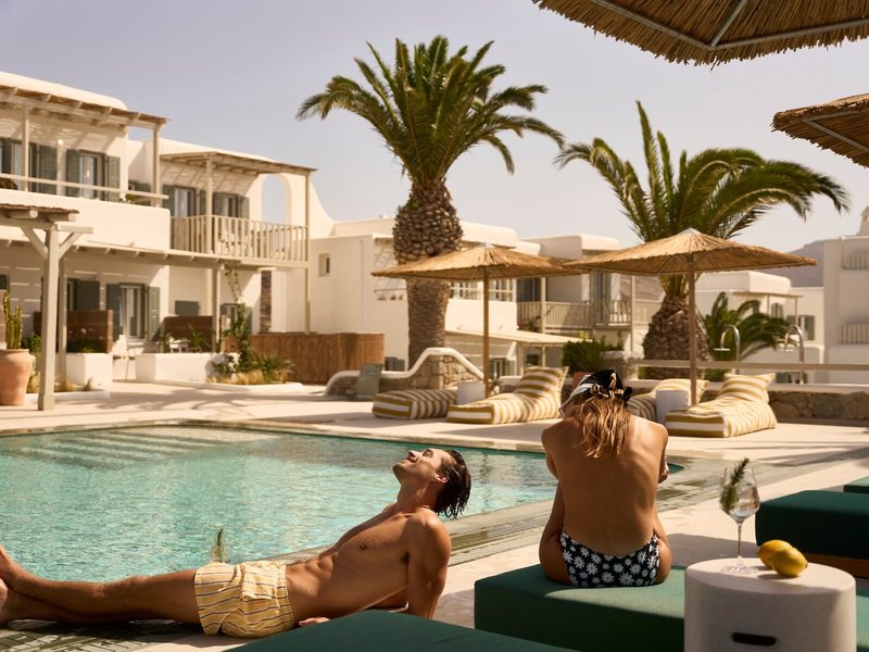 - Letisko Mykonos (JMK) cca. 10 km, čas jazdy: cca. 20 minút (čas prenosu sa môže líšiť).