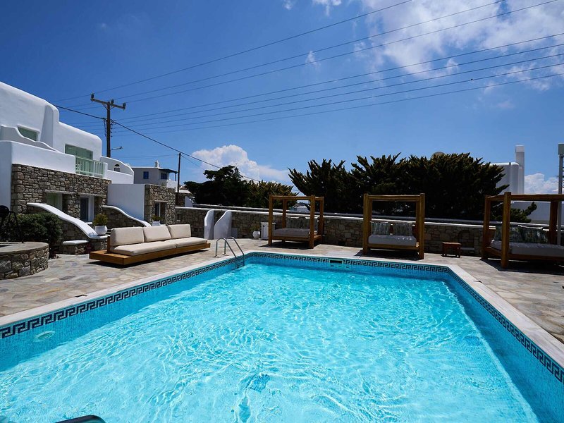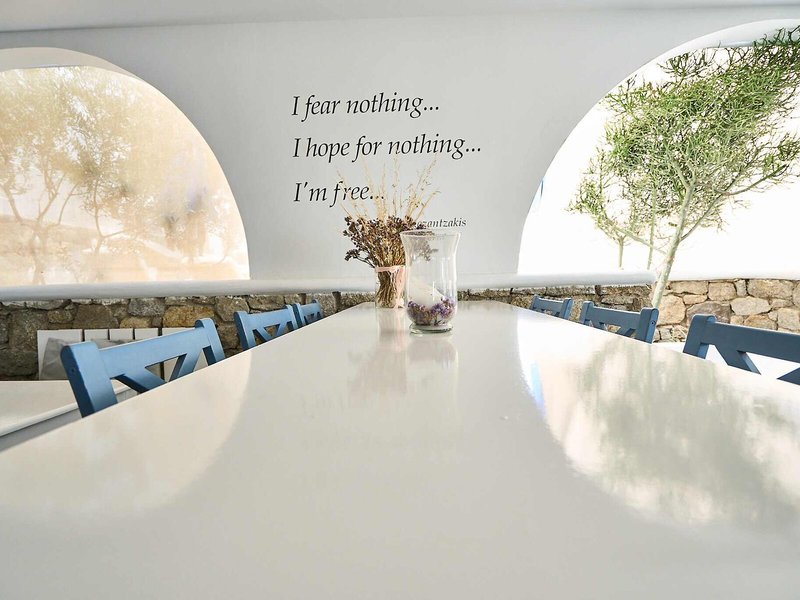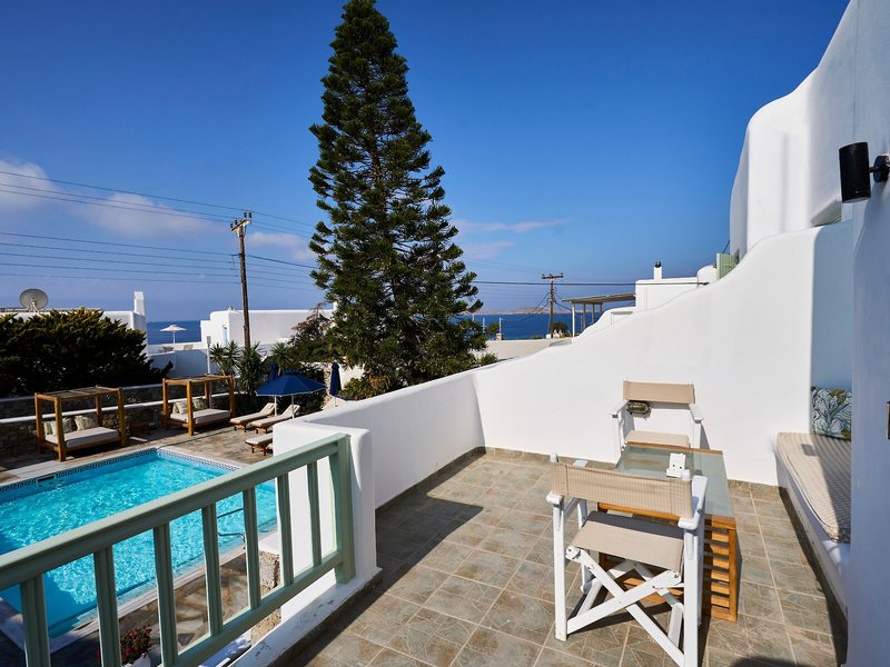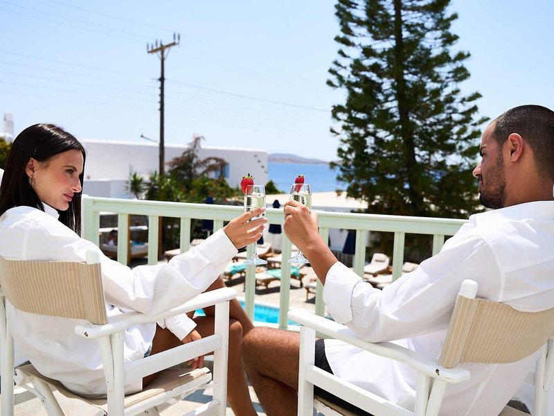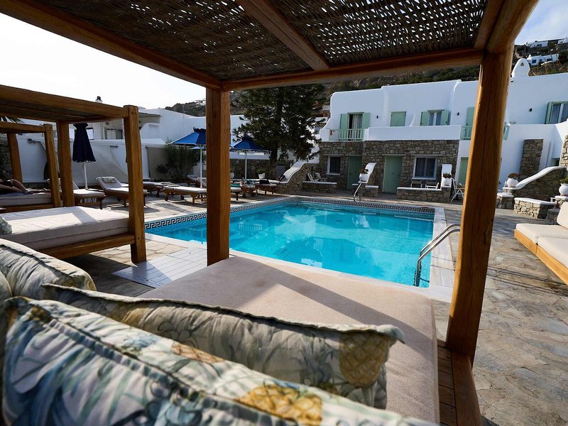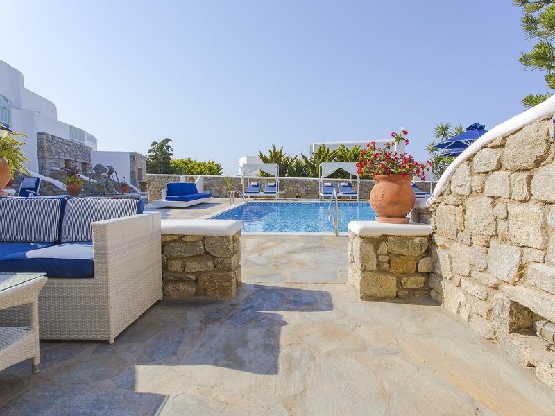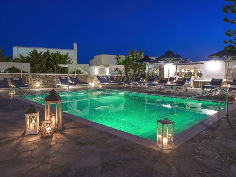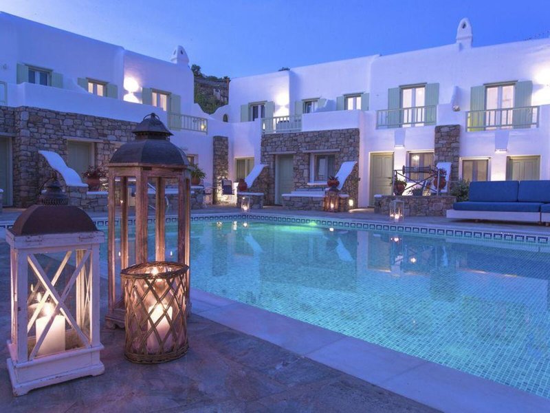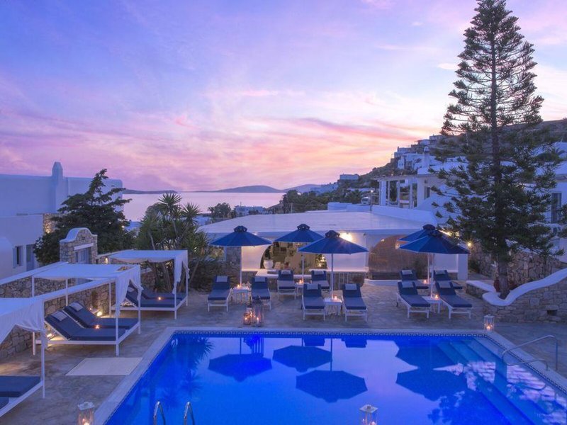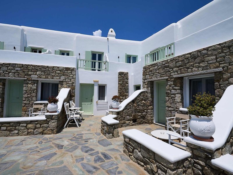 Poloha a okolie Komplex sa nachádza v Agios Ioannis, na západe ostrova, a je len 5 minút chôdze od pláže Agios Ioannis. Neďaleko sa nachádza pláž Kapari, ktorá môže návštevníkom ponúknuť jeden z najkrajších západov slnka na ostrove. Mesto Mykonos je od hotela vzdialené približne 4,5 km.