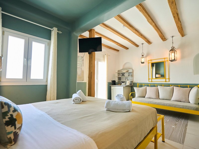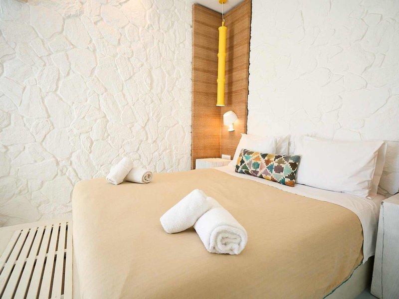 Lage & Umgebung Die Anlage befindet sich in Agios Ioannis, im Westen der Insel, und nur etwa 5 Gehminuten vom Strand von Agios Ioannis entfernt. In der Nähe liegen der Strand Kapari, der den Besuchern einen der schönsten Sonnenuntergänge der Insel bieten kann. Die Stadt Mykonos liegt ungefähr 4,5 km vom Hotel entfernt.