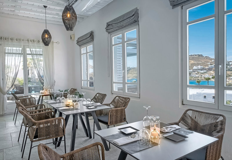 - Mit Blick auf die malerische Bucht und bietet einen schönen Blick auf den Strand von Ornos