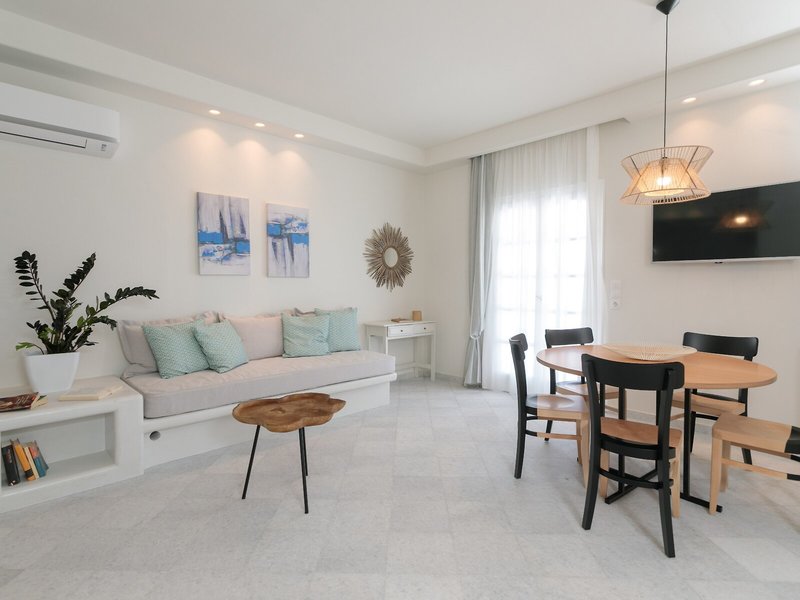 So wohnen Sie: Die Zimmer sind mit einem Wohnbereich, einer Küche und einem Badezimmer ausgestattet, außerdem sorgen eine Klimaanlage und eine Heizung für gutes Raumklima. Die Gäste können den Bergblick von Balkon oder Terrasse genießen. Die Zimmer verfügen über ein Kingsizebett und ein Sofabett. Zustellbetten können angefordert werden. Außerdem sind ein Safe und ein Schreibtisch verfügbar. Eine Kochnische mit einem Kühlschrank, einem Herd und einer Tee-/Kaffeemaschine ist ebenfalls standardmäßig vorhanden. Hinzu kommen ein Bügelset und eine Hosenpresse. Besten Urlaubskomfort bieten ein Telefon, ein TV-Gerät mit Satelliten-/Kabelempfang, ein Wecker und WiFi (ohne Gebühr). Im Badezimmer, ausgestattet mit einer Dusche und einer Whirlwanne, gibt es einen Haartrockner. Für besonderen Komfort in den Badezimmern sorgen Kosmetikartikel und eine Auswahl an Handtüchern. Die Unterbringung bietet Familien- und Nichtraucherzimmer.