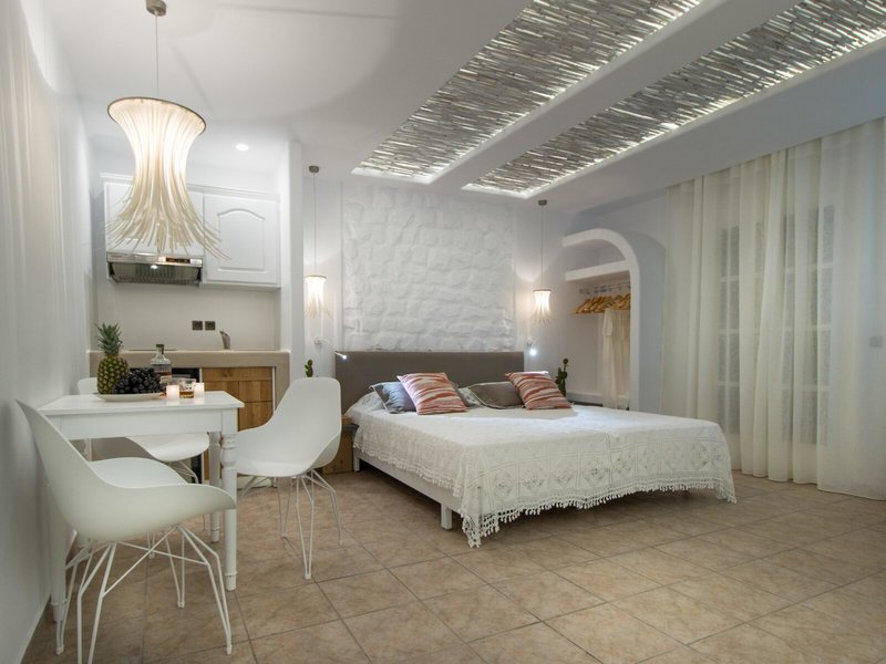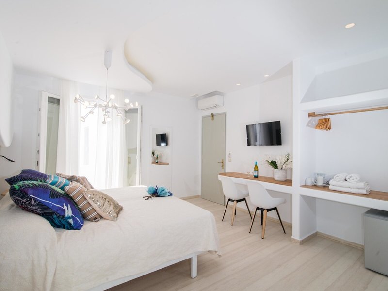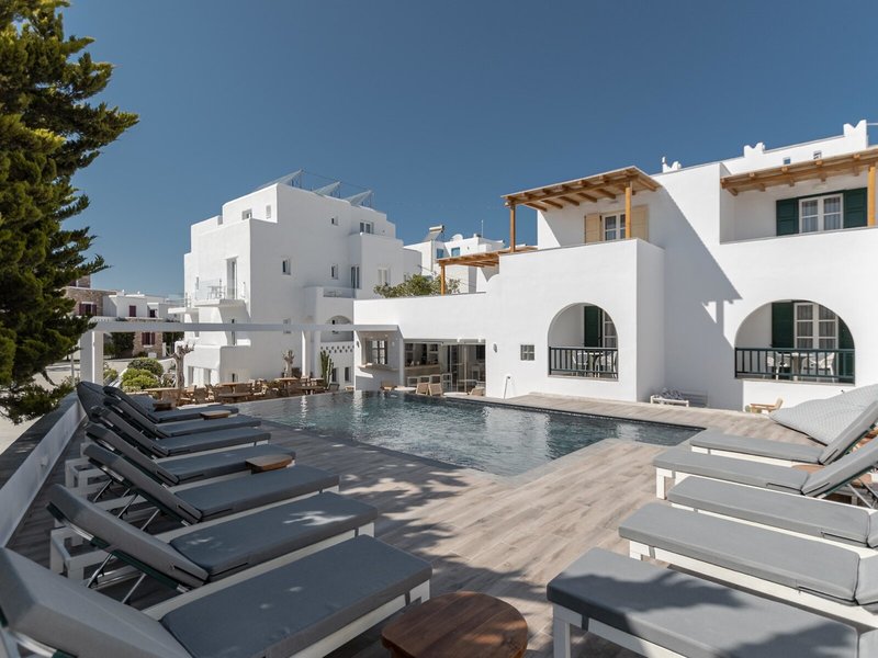 Lage & Umgebung Das charmante Hotel ist etwa 200 m vom schönen und flach abfallenden Saint George Strand entfernt. Ca. 400 m sind es bis zum Hauptplatz von Naxos-Stadt. Naxos-Stadt begeistert mit seinen verwinkelten Gassen in der Altstadt und dem mittelalterlichen Kastro.