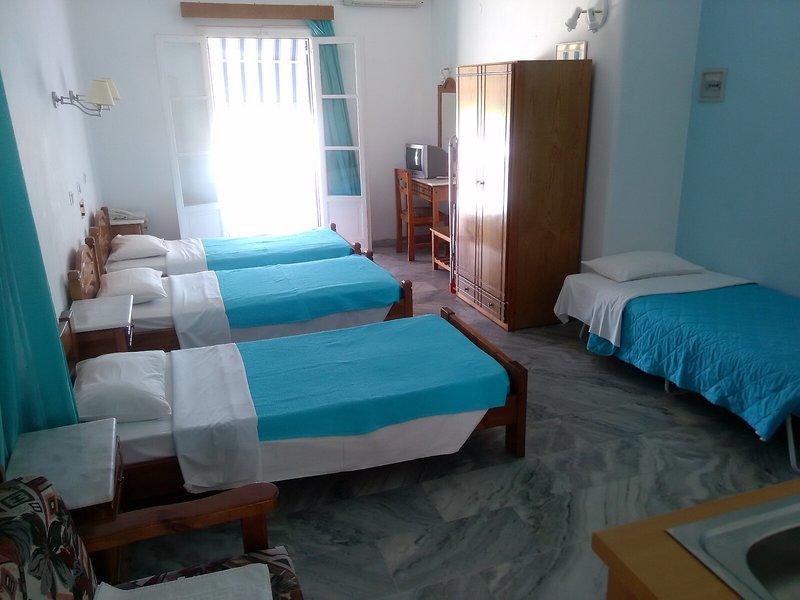 Poloha a okolie Hotel sa nachádza asi 600 m od mesta Parikia. Je to len 80 m ku krásnej pláži Livadias, 600 m ku kostolu Ekantopyliani a 700 m k Archeologickému múzeu. Je to 6 km od Petaloudes, 12 km od Naoussa a 16 km od Leykes. Letisko Paros je od hotela vzdialené približne 8 km.