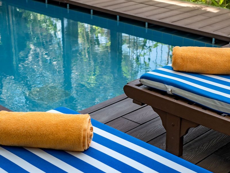 - Bazény: Detský bazén, Vyhrievaný vonkajší bazén, Vnútorný bazén, Vonkajší bazén, Slnečníky, Ležadlá pri bazéne