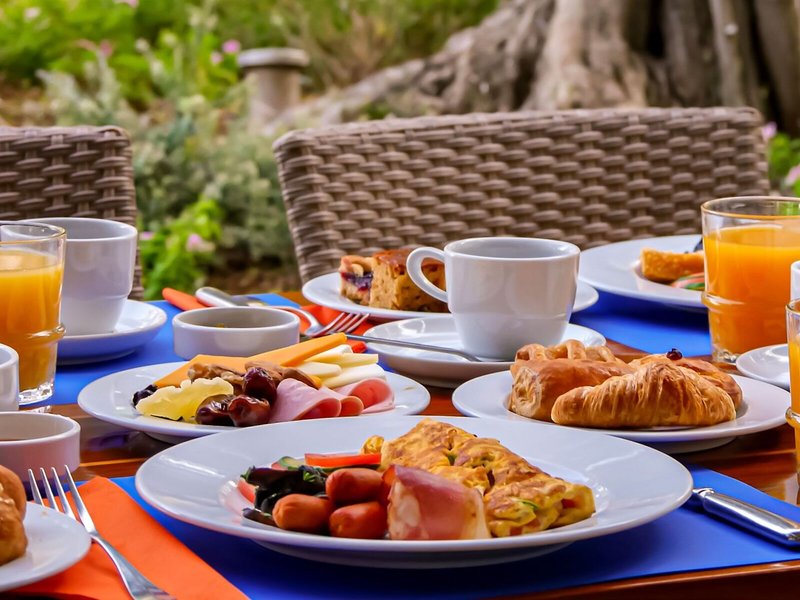 Jedlo a pitie: K dispozícii sú rôzne možnosti stravovania vrátane reštaurácie (s detskými stoličkami), raňajkovej miestnosti, kaviarne a baru. Ubytovanie ponúka raňajky, polpenziu a plnú penziu. Bohatý raňajkový bufet zaručuje dobrý štart do dňa. Na obed a večeru si hostia môžu vybrať medzi bufetmi, à la carte jedlami a menu. Na požiadanie je možné pripraviť diétne jedlá a detské menu. Rezort ponúka aj špeciálne cateringové služby.