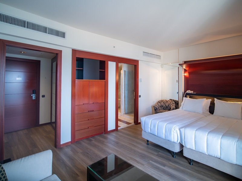 Vaše ubytovanie: Klimatizácia a kúrenie zabezpečujú príjemnú klímu v izbách. Väčšina ubytovacích jednotiek ponúka výhľad na more z balkóna alebo terasy. Izby s kobercom sú vybavené manželskou posteľou alebo rozkladacou pohovkou. Prístelky je možné požiadať. K dispozícii je aj trezor, minibar a písací stôl. Štandardom je aj príslušenstvo na prípravu čaju/kávy. Pre pohodlie hostí je k dispozícii žehliaca súprava. Okrem toho je k dispozícii telefón s priamou voľbou, TV so satelitnými/káblovými programami, rádio, stereo systém a Wi-Fi (bezplatné). Hostia môžu využiť večernú službu rozostlania postele. Kúpeľňa so sprchovacím kútom a vaňou je vybavená sušičom vlasov a županmi. K dispozícii sú bezbariérové izby. Ubytovanie ponúka rodinné izby a 255 nefajčiarskych izieb.