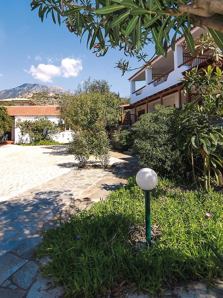 Die gemütliche Anlage liegt direkt an der berühmten Kalogria-Bucht nur ca. 50 m vom feinsandigen, breiten Strand entfernt, und besteht aus insgesamt 10 Wohneinheiten, die sich auf 2 Gebäudekomplexe verteilen. Hier wohnte einst der Schriftsteller Nikos Kazantzakis und sammelte seine Charaktäre für seine Sorbas Novelle, die Grundlage der späteren weltberühmten Hollywood-Verfilmung mit Anthony Quinn.