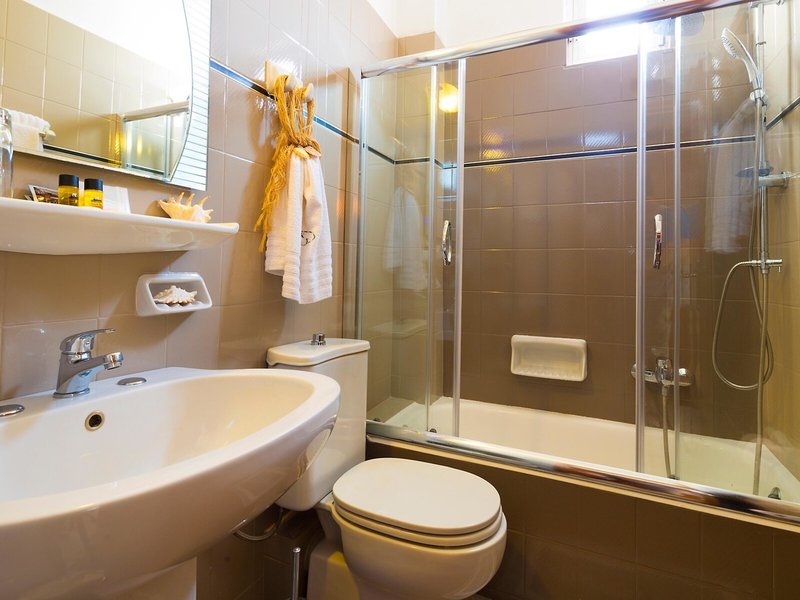 - Dvojlôžková izba s výhľadom na more typ 1 (DZM1), dvojlôžková izba, výhľad na more, cca 17 m², celkový počet izieb v tomto type izby: 1, 1 manželská posteľ, klimatizácia, kúrenie, podlaha: dláždená podlaha, chladnička, telefón, Internet: WLAN/WiFi: zadarmo, TV, rádio, izbová služba: za poplatok, vaňa alebo sprcha, WC, fén, balkón alebo terasa