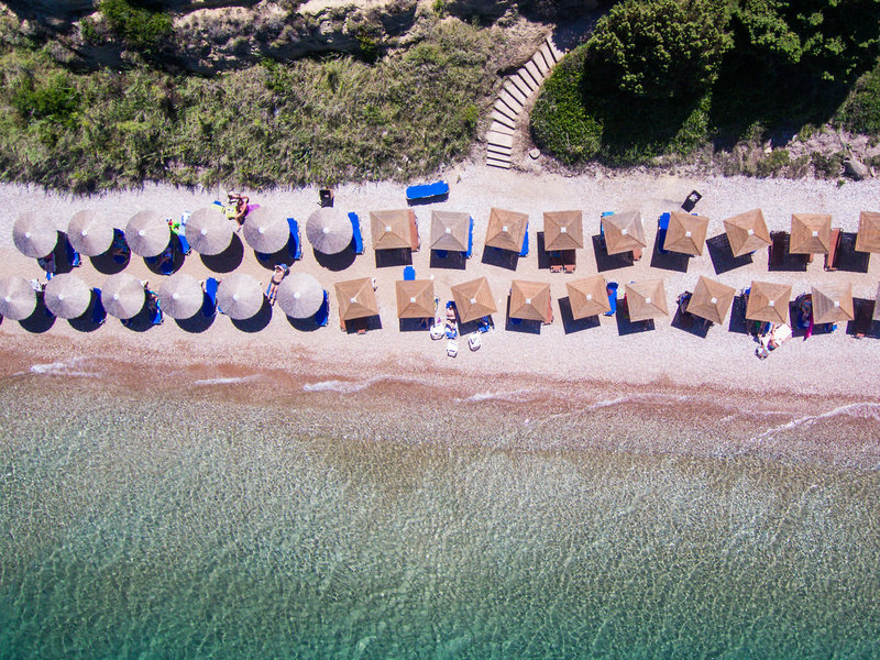 - Strand „NIFOREIKA BEACH“: Sand, felsig, Treppen zum Strand, öffentlich mit eigenem Hotelabschnitt, Liegen