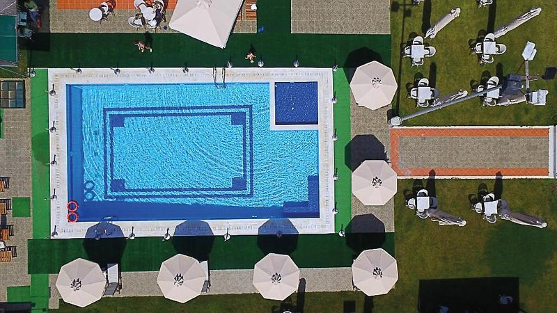 - Bazén so slnečnou terasou a samostatný detský bazén (ležadlá a slnečníky v cene)
