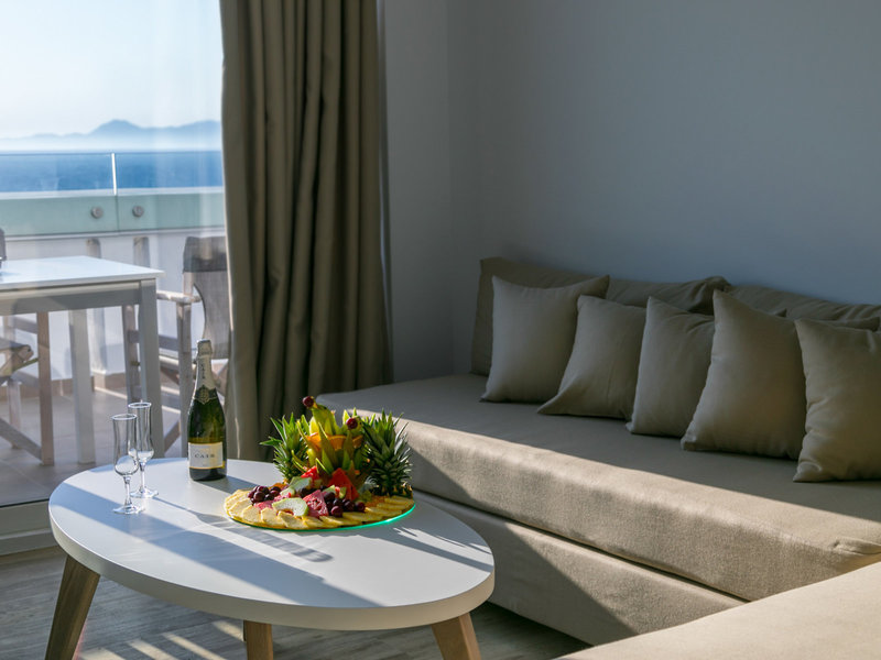 - One Bedroom Suite Seaview (SUM2), Suite, Nichtraucherzimmer, im Hauptgebäude, Meerblick, ca. 45 - 45 m², letzte Komplettrenovierung 2018, Gesamtanzahl der Räume in diesem Zimmertyp: 1, Aufteilung wie folgt: 1 Schlafzimmer, 0 Einzelbetten (80x200cm), 1 Doppelbett (160x200cm), 2 Schlafsofas (80x195cm), Babybett: ohne Gebühr, bei All Inclusive inklusive, Anfrage & Reservierung notwendig, Klimaanlage: ohne Gebühr, bei All Inclusive inklusive, Mai - Oktober, individuell regelbar, kalt, warm, Heizung: Mai und Oktober, individuell regelbar, Fußboden: PVC, Safe: ohne Gebühr, bei All Inclusive inklusive, Schreibtisch, Kaffee-/Teezubereiter, Wasserkocher, Minibar: ohne Gebühr, bei All Inclusive inklusive, Softdrinks: ohne Gebühr, bei All Inclusive inklusive, Wasser: ohne Gebühr, bei All Inclusive inklusive, alkoholische Getränke: ohne Gebühr, bei All Inclusive inklusive, Minibarauffüllung: täglich 24 Stunden, Telefon, Internet: WLAN/WiFi: ohne Gebühr, bei All Inclusive inklusive, Fernseher: Flatscreen, Sat-TV, Reinigungsservice: täglich, ohne Gebühr, bei All Inclusive inklusive, Badewanne oder Dusche, WC, Slipper: ohne Gebühr, bei All Inclusive inklusive, Föhn, Balkon