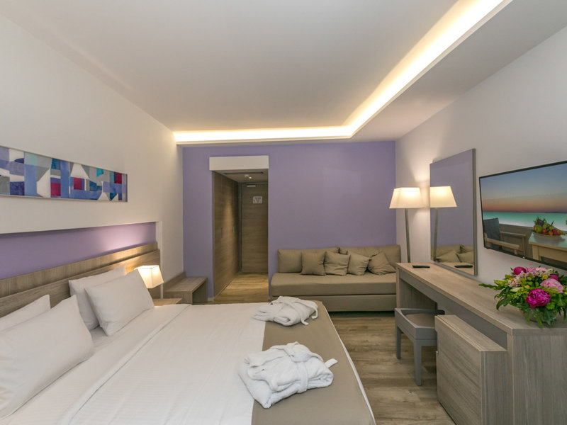 - One Bedroom Family Suite Annex (FZX1), Familienzimmer, Nichtraucherzimmer, im Nebengebäude, Landblick, ca. 40 - 45 m², letzte Komplettrenovierung 2019, Gesamtanzahl der Räume in diesem Zimmertyp: 2, Aufteilung wie folgt: kombiniertes Wohn-/Schlafzimmer, 1 Schlafzimmer, 1 Doppelbett (160x200cm), 3 Schlafsofas (80x195cm), Babybett: ohne Gebühr, bei All Inclusive inklusive, Anfrage & Reservierung notwendig, Klimaanlage: ohne Gebühr, bei All Inclusive inklusive, Mai - Oktober, individuell regelbar, kalt, warm, Heizung: Mai und Oktober, individuell regelbar, Fußboden: PVC, Safe: ohne Gebühr, bei All Inclusive inklusive, Sofa, Schreibtisch, Kaffee-/Teezubereiter, Wasserkocher, Minibar: ohne Gebühr, bei All Inclusive inklusive, Softdrinks: ohne Gebühr, bei All Inclusive inklusive, Wasser: ohne Gebühr, bei All Inclusive inklusive, alkoholische Getränke: ohne Gebühr, bei All Inclusive inklusive, Minibarauffüllung: täglich 24 Stunden, Telefon, Internet: WLAN/WiFi: ohne Gebühr, bei All Inclusive inklusive, Fernseher: Flatscreen, Sat-TV, Reinigungsservice: täglich, ohne Gebühr, bei All Inclusive inklusive, Badewanne oder Dusche, WC, Slipper: ohne Gebühr, bei All Inclusive inklusive, Föhn, Balkon: mit Sitzgelegenheit