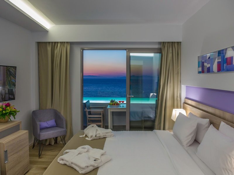 - Double Panoramic Front Sea view (DZY1), Doppelzimmer, im Hauptgebäude, Meerblick, ca. 25 - 25 m², letzte Komplettrenovierung 2018, Gesamtanzahl der Räume in diesem Zimmertyp: 1, Aufteilung wie folgt: kombiniertes Wohn-/Schlafzimmer, 1 King Size Bett (160x200cm), 1 Schlafsofa (80x195cm), Babybett, Klimaanlage: individuell regelbar, kalt, warm, Heizung: individuell regelbar, Fußboden: PVC, Safe, Sofa, Kaffee-/Teezubereiter, Wasserkocher, Minibar: Softdrinks, Wasser, alkoholische Getränke, Minibarauffüllung, Telefon, Internet: WLAN/WiFi, Fernseher: Flatscreen, Sat-TV, Reinigungsservice, Badewanne oder Dusche, WC, Slipper, Föhn, Balkon