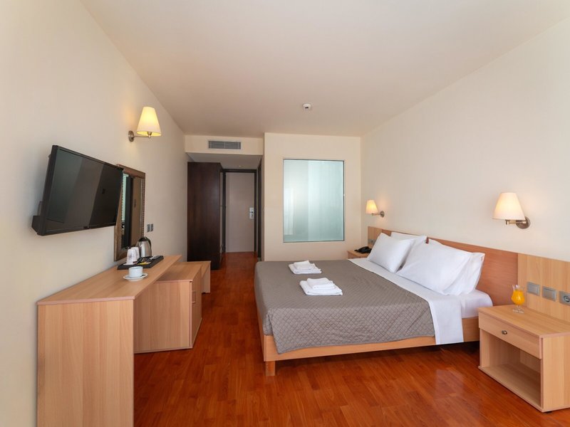 - Double Pool or Side Sea view (DZM1), Doppelzimmer, Nichtraucherzimmer, im Hauptgebäude, Meerblick, Landblick, ca. 22 m², letzte Komplettrenovierung 2018, Gesamtanzahl der Räume in diesem Zimmertyp: 1, Aufteilung wie folgt: 1 Schlafzimmer, 1 Doppelbett (135x190cm), 1 Schlafsofa (135x175cm), Babybett: ohne Gebühr, Anfrage & Reservierung notwendig, Klimaanlage: ohne Gebühr, zentral gesteuert, Fußboden: Fliesenboden, Safe: ohne Gebühr, Kühlschrank: ohne Gebühr, bei All Inclusive inklusive, Minibar: gegen Gebühr, Softdrinks: gegen Gebühr, Wasser: gegen Gebühr, alkoholische Getränke: gegen Gebühr, Snacks: gegen Gebühr, Telefon, Internet: WLAN/WiFi: ohne Gebühr, Fernseher: Flatscreen, im Schlafzimmer, deutsches Programm, Sat-TV, Reinigungsservice, Badewanne oder Dusche, WC, Föhn, Balkon, Balkon oder Terrasse: mit Sitzgelegenheit
