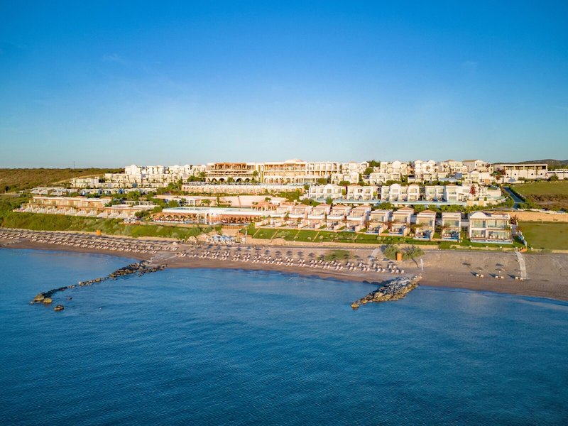 Poloha a okolie Luxusný hotelový komplex sa nachádza priamo na krásnej pláži (piesok/štrk). Moderná, príťažlivá architektúra a stredomorská elegancia boli šikovne spojené v dizajne. Komplex pozostáva z hlavnej budovy s reštauráciami a úchvatným 180° výhľadom na more, ako aj niekoľkých menších bungalovov a víl. Malá malebná dedinka Lahania je vzdialená cca 5 km, najjužnejší výbežok ostrova Prassonissi, raj pre surfistov, je vzdialený cca 18 km a Lindos je vzdialený cca 30 km. Doba prenosu: cca 85-125 minút.