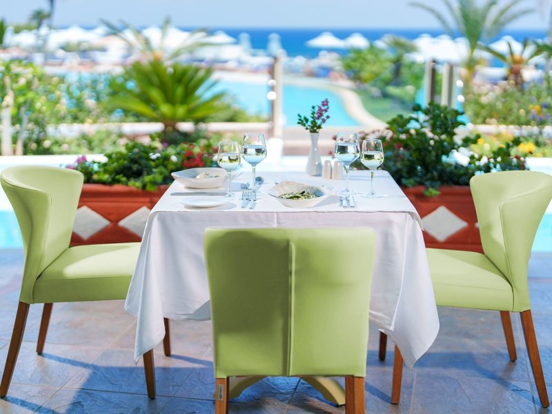 - Gurmánska reštaurácia Thalassa: Kuchyňa: Grécka, Stredomorská, ryby/morské plody, à la carte, nutná rezervácia, za poplatok, v cene All Inclusive, denne 12:30 - 23:00, s terasou, detskou stoličkou, vhodné oblečenie