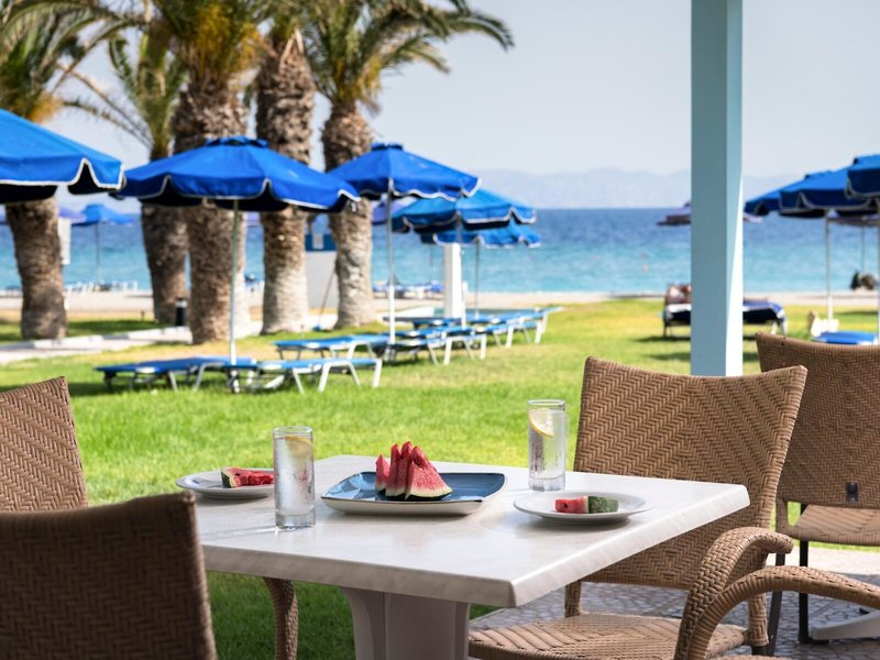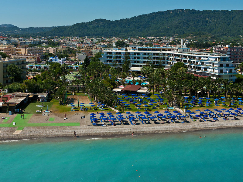Poloha a okolie Hotelový komplex ponúka priamy prístup na piesočnatú/kamienkovú pláž Ialyssos (odporúčame kúpaciu obuv) a je vzdialený len asi 50 m od najbližšej autobusovej zastávky. Nachádza sa 8 km od centra Rodosu, 64 km od Lindosu a 7 km od letiska. Čas prenosu: približne 15-55 minút.