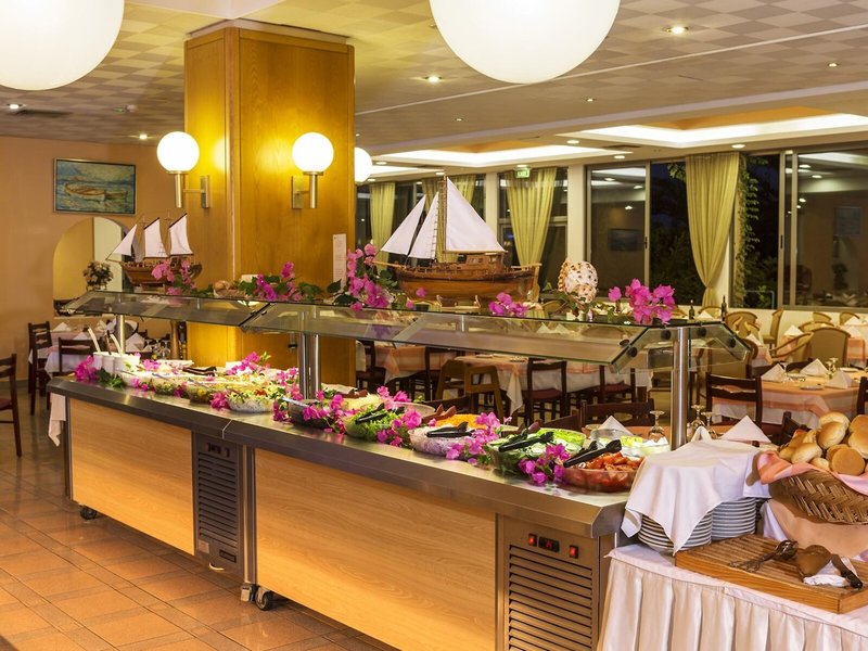 - Hlavná reštaurácia: Kuchyňa: grécka, medzinárodná, talianska, stredomorská, ryby/morské plody, grilované jedlá, sushi, bezlepkové jedlá: bez poplatku, nutná požiadavka a rezervácia, bezlaktózové jedlá, vegetariánske jedlá: bez poplatku, nie je možné objednať a rezervovať nutné, bufet, za poplatok, v cene all inclusive, klimatizácia, vysoká stolička, vhodné oblečenie