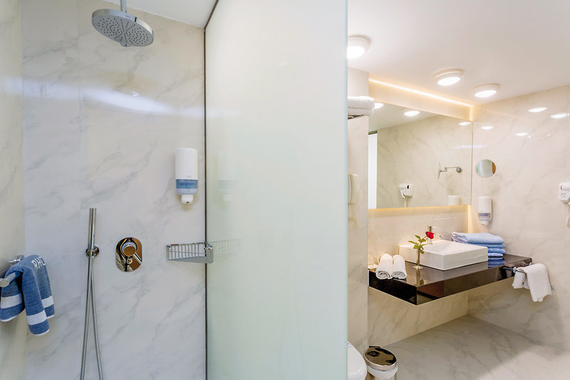 - 21-25 m², dvojlôžková izba, bočný výhľad na more, 1 kúpeľňa, sprchovací kút alebo vaňa, WC, fén, klimatizácia, individuálne ovládaná, minichladnička, 1 TV (satelitná TV), Wi-Fi, kávovar, balkón