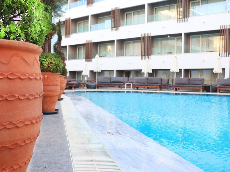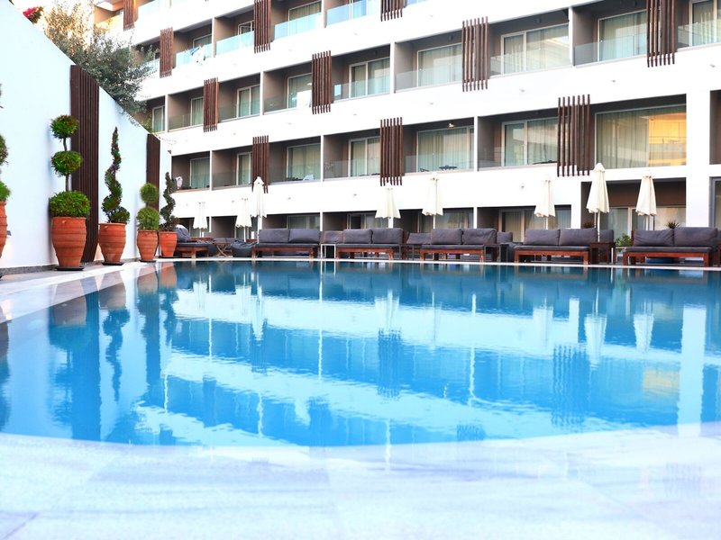 - PROMO Double Suite (DZX1), Suite, im Hauptgebäude, Poolblick, Stadtblick, ca. 30 m², Gesamtanzahl der Räume in diesem Zimmertyp: 1, Aufteilung wie folgt: 1 Schlafzimmer, 1 Doppelbett, Klimaanlage: ohne Gebühr, individuell regelbar, Heizung: individuell regelbar, Fußboden: Fliesenboden, Safe: ohne Gebühr, Kaffee-/Teezubereiter, Internet: WLAN/WiFi: ohne Gebühr, Fernseher: Flatscreen, Dusche, Föhn, Balkon oder Terrasse
