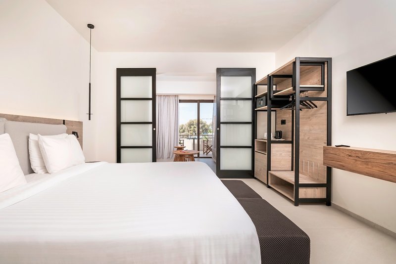 - 26-30 m², dvojlôžková izba, výhľad na more, 1 kúpeľňa, vaňa, WC, fén, individuálne ovládaná klimatizácia, trezor, 1 TV (satelitná TV), Wi-Fi, príslušenstvo na prípravu kávy/čaju, chladnička, balkón alebo terasa