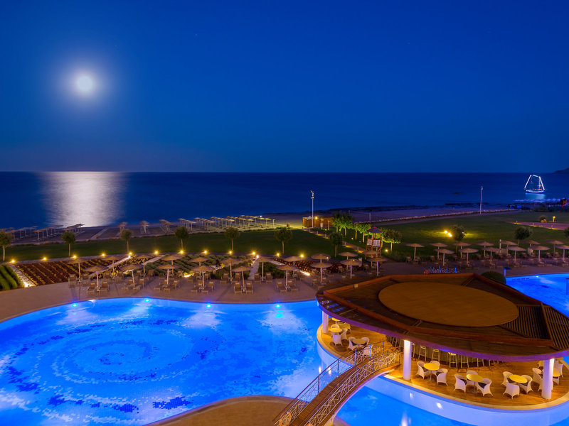 Poloha a okolie Nachádza sa priamo na krásnej dlhej pláži (piesok/štrk, odporúča sa kúpacia obuv) medzi Faliraki a Kalithea. Hotelový komplex pozostáva z hlavnej budovy a 2 prepojených bočných krídel a zaujme svojou modernou architektúrou a pohodlným prostredím. V hlavnej budove zaujme átrium 3 panoramatickými výťahmi a veľkou záhradnou lagúnou na prízemí. Centrum mesta Faliraki s rôznymi obchodmi a barmi je vzdialené cca 4 km. Čas prenosu: cca 40 minút.
