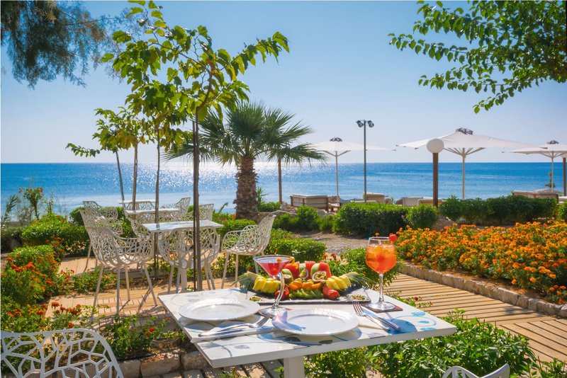 Vybavenie: Veľmi moderný a architektonicky zaujímavý komplex pre vysoké nároky, ktorý pozostáva z 8-poschodovej hlavnej budovy s panoramatickými výťahmi, 7-poschodovej prístavby a 6-poschodovej budovy. Nadštandardne zariadené a majú recepciu, lobby, internetový kútik (vrátane), Wi-Fi (v cene), hlavnú reštauráciu, gurmánsku à la carte reštauráciu na najvyššom poschodí s úchvatným výhľadom, stredomorskú reštauráciu na obed (á la carte). ) a Večera, lounge bar, bar pri bazéne, plážový bar, konferenčné miestnosti, sladkovodný bazén v tvare lagúny, vyhrievaný bazén vo wellness centre a malý detský bazén. Ležadlá a slnečníky sú pri bazéne a na pláži zdarma. V cene sú zahrnuté osušky.