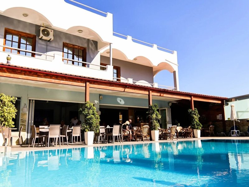 Poloha a okolie: Nachádza sa pri vstupe do Kremasti, len pár minút od pláže, centra mesta a letiska. Kaviarne, taverny a malé obchody sú v pešej vzdialenosti. Vonkajší priestor ponúka bazén a bar. Mesto Rodos s historickým starým mestom a Údolím motýľov je vzdialené približne 13 km a Akropola v Lindose je vzdialená približne 50 km.
