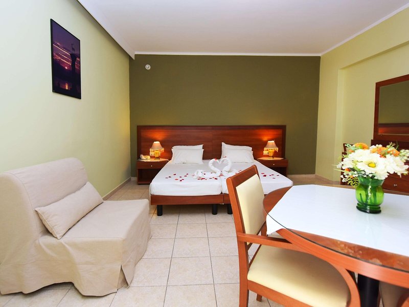Poloha a okolie: Nachádza sa pri vstupe do Kremasti, len pár minút od pláže, centra mesta a letiska. Kaviarne, taverny a malé obchody sú v pešej vzdialenosti. Vonkajší priestor ponúka bazén a bar. Mesto Rodos s historickým starým mestom a Údolím motýľov je vzdialené približne 13 km a Akropola v Lindose je vzdialená približne 50 km.