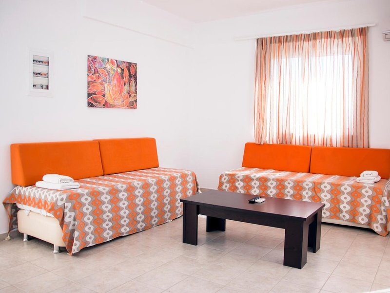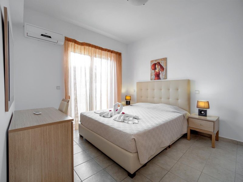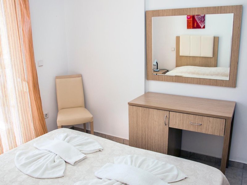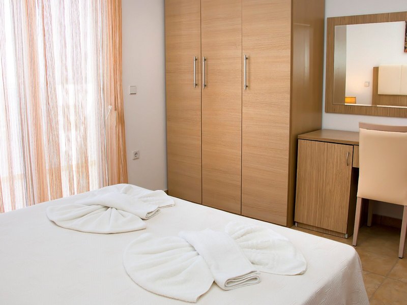Ubytovanie: Izby majú kuchyňu a kúpeľňu a klimatizácia zabezpečuje príjemnú vnútornú klímu. Hostia si môžu oddýchnuť a vychutnať si výhľad na more na balkóne alebo súkromnej terase väčšiny izieb. Izby sú vybavené manželskou posteľou alebo rozkladacou pohovkou. Prístelky je možné požiadať. K dispozícii je aj trezor a písací stôl. Kuchynka je vybavená chladničkou, mikrovlnnou rúrou a zariadením na prípravu čaju/kávy. K dispozícii je aj práčka a sušička. K dispozícii je telefón, satelitná TV a bezplatné Wi-Fi pripojenie na internet. Kúpeľňa so sprchovacím kútom a vaňou obsahuje aj sušič vlasov. Pre väčšie pohodlie sú k dispozícii toaletné potreby a výber uterákov. Pre rodičov s deťmi sú k dispozícii rodinné izby.