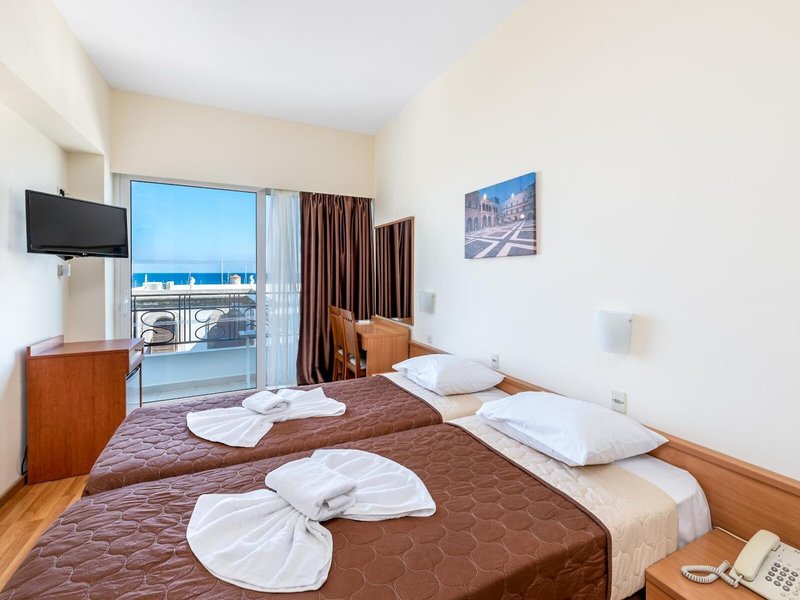 Lage & Umgebung Das Hotel liegt ca. 5 Minuten vom Strand entfernt, in zentraler Lage in Rhodos-Stadt.